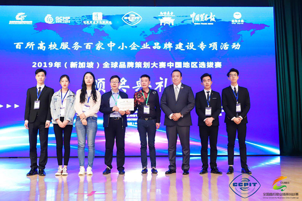 2019年4月28日全球华人营销联盟副主席Roger Wang(右三)为我校品牌策划团队颁发“服务地方经济卓越奖”