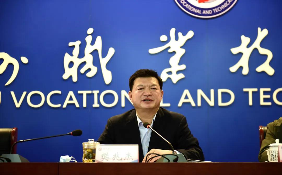 樊兆杰全面客观分析了当前学校发展面临的重大机遇,要求,全校要增强加快发展的紧迫感和责任感,抢抓国家职业教育创新发展高地建设的政策先机,发挥省职业教育创新发展试验区职教龙头带动作用,把发展潜力转变成发展动力,把美好的发展前景转变成生动现实。