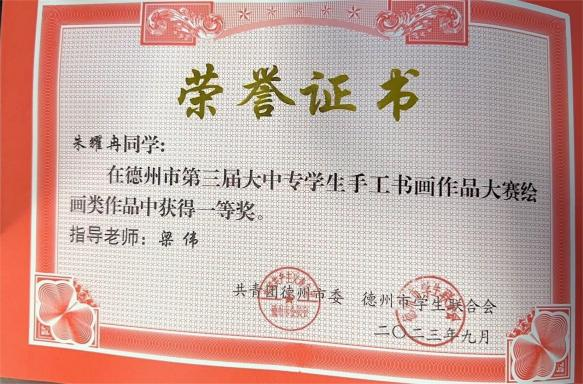 学前教育(中外合作)十三班是一个不一般的集体,特别团结、特别和谐。从大一开始,全班同学就拧成一股绳,积极参加学校组织的各项活动,体会胜利的喜悦,感受团队的力量。他们像一颗颗种子,扎根在班级土壤里,汲取能量,相扶相携,向上攀登。管芮同学获2023年省职业院校技能大赛二等奖,王小璐同学获2023年山东省大学生乒乓球大赛全省第八名,彭韵梦、朱耀冉同学在2023年德州市第三届大中专学生手工书画作品大赛中获一等奖。还有多位同学荣获德州市优秀团员、校级优秀团员、优秀学生、校园十佳、优秀志愿者等多项荣誉。三年来,班级荣获优秀团支部、军训优秀方队等多项集体荣誉。
