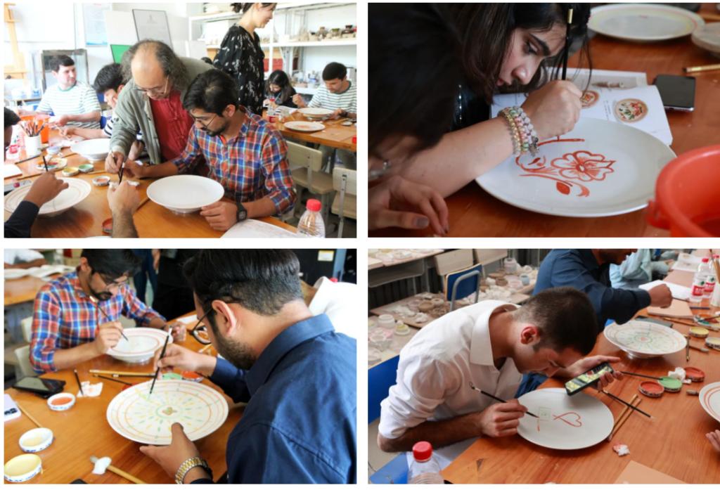 活动中,我校学前教育与社会服务系教师、宋磁德州窑红绿彩文化研究院院长徐基中介绍了红绿彩的历史和制作方法,并现场展示红绿彩制作技艺,一件件精美的艺术品和精彩的解说让大家沉浸其中。在老师的指导下,大家纷纷拿起画笔描绘勾勒,近距离感受红绿彩陶瓷的魅力。
