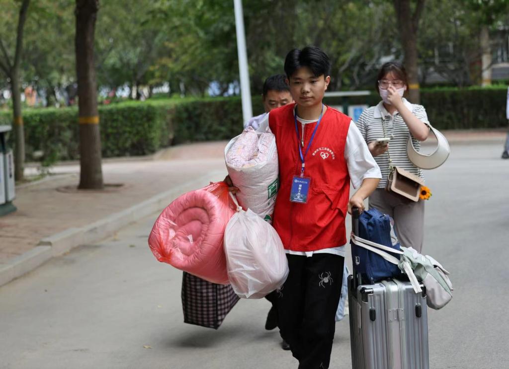 在学校报到点、宿舍楼随处可见志愿者们忙碌的身影,他们跑前跑后,为家长和新生指路,帮助搬运行李,用耐心和细心为新生解答疑问,让每一位新生倍感温暖和亲切。