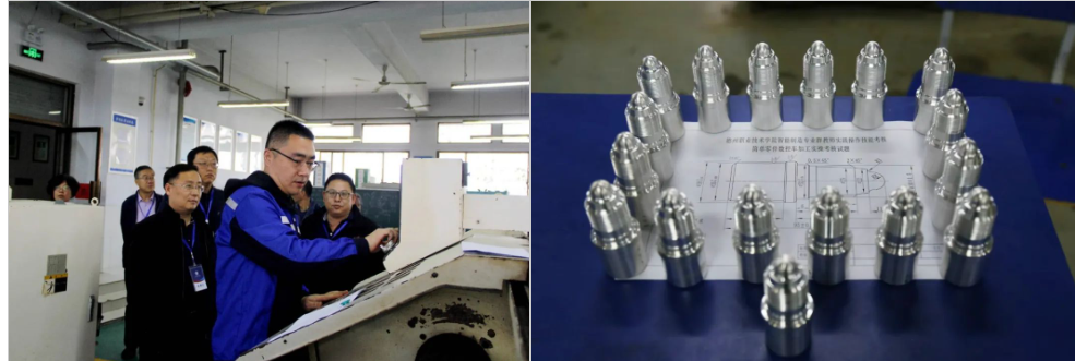 教师们积极参与,纷纷展示教学实践中的独特技能和创新成果,展现出扎实的实践技能和对工艺流程的深刻理解。在“简单零件数控车加工”项目考核现场,教师们不仅熟练操作数控机床,而且省工省料,精确加工出设计图纸上的零件。