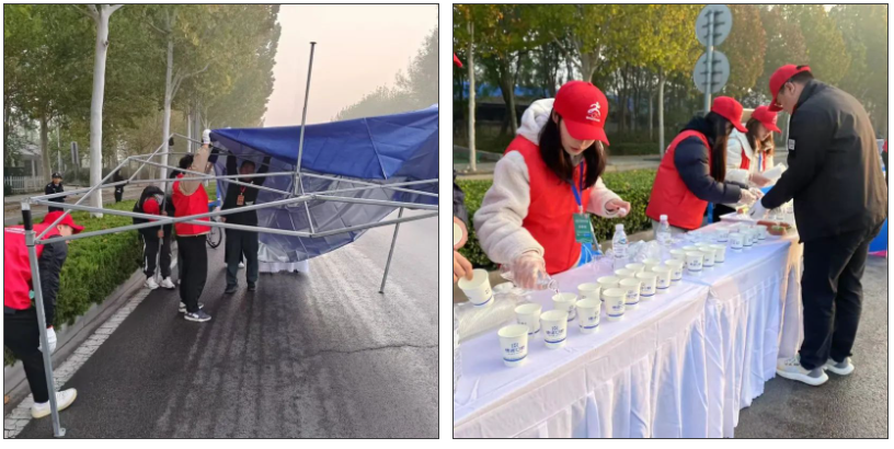 凌晨三点,伴随点点星光和氤氲轻雾,志愿者们集合完毕。随着比赛正式拉开帷幕,我校志愿者迅速进入角色,分布在赛道沿线、起跑区、补给站、医疗点等多个关键位置。他们各司其职,以饱满的热情和专业的态度,为参赛者提供全方位的服务。