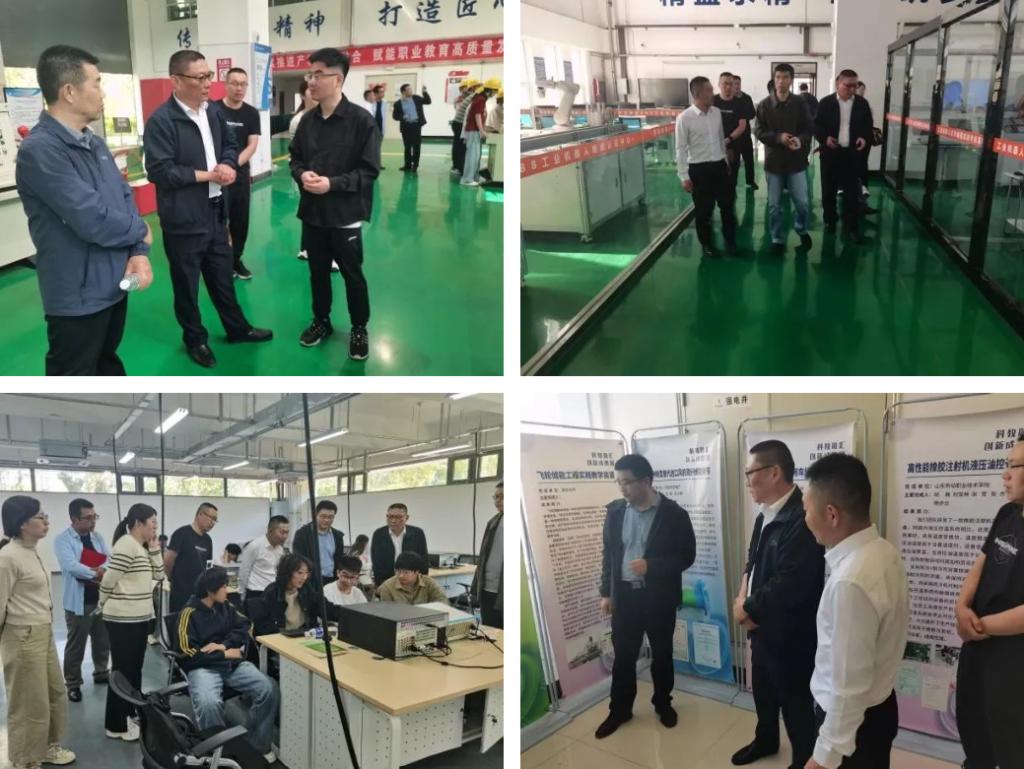 张宏雷一行参观了我校工业机器人实训中心、高强创新工作室、智能制造公共实训中心、绿色化工实训中心、建筑系装配式实训中心、电子与新能源技术工程系实训室、德州市工匠学院,随后进行座谈。
