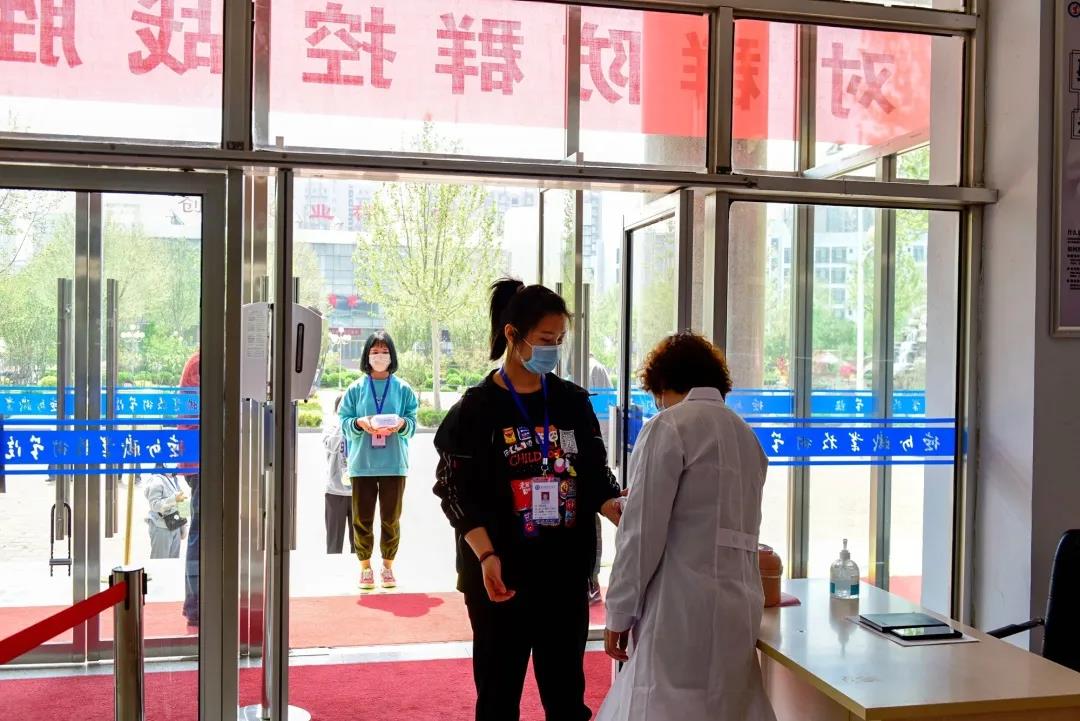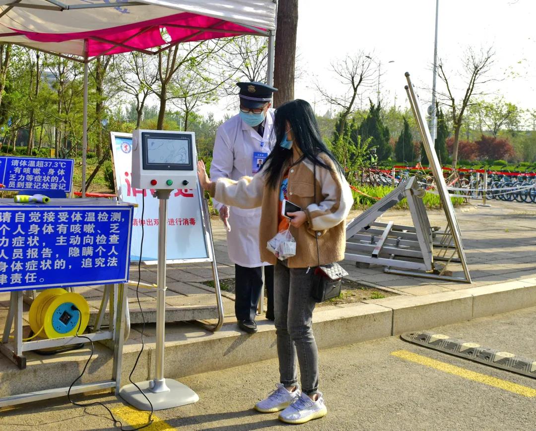 第一站,工作人员引导学生入校,进行体温测试和信息核验登记。