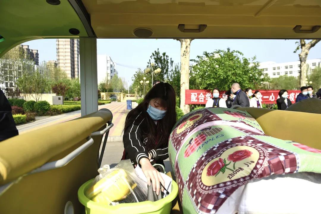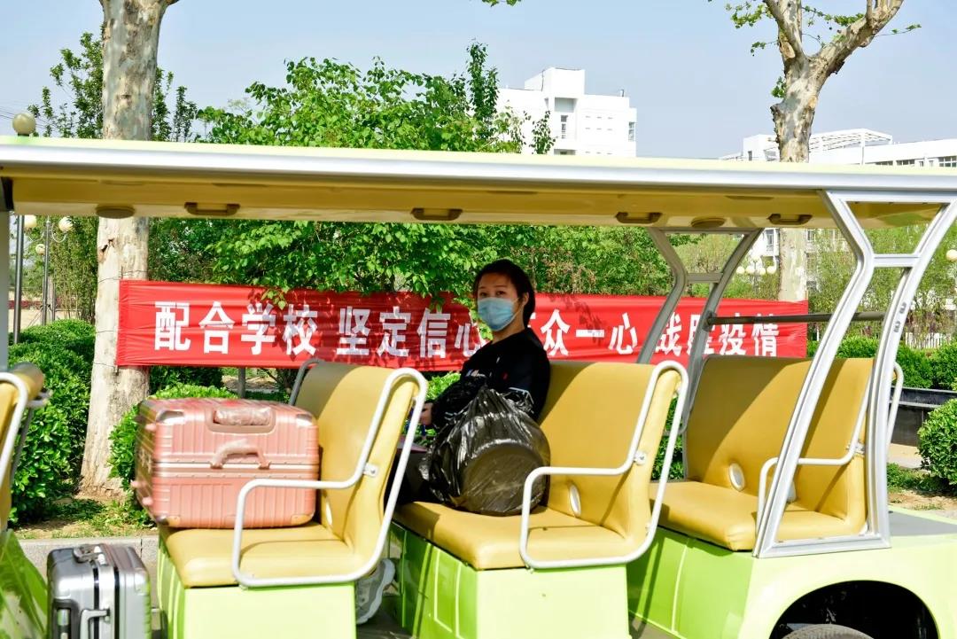 学校安排专车,送学生到宿舍。