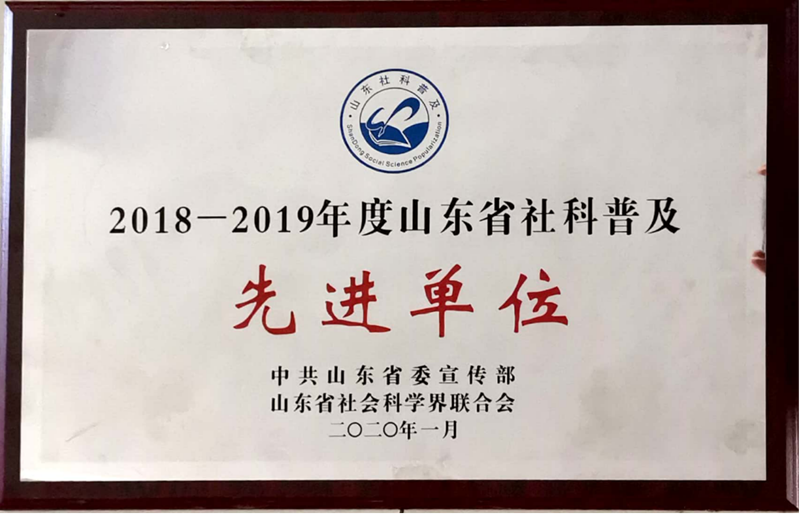 近日,中共山东省委宣传部、山东省社会科学界联合会下发了《关于表彰2018-2019年度山东省社科普及工作先进单位、先进个人的通报》(鲁社科联字〔2020〕2号),对2018年以来在社会科学普及工作中做出突出成绩的单位和个人进行表彰。本次活动共评选出“先进个人”105名,“先进单位”80个,其中高校社科联先进单位17个。suncitygroup太阳新城荣获“山东省社科普及先进单位”称号。