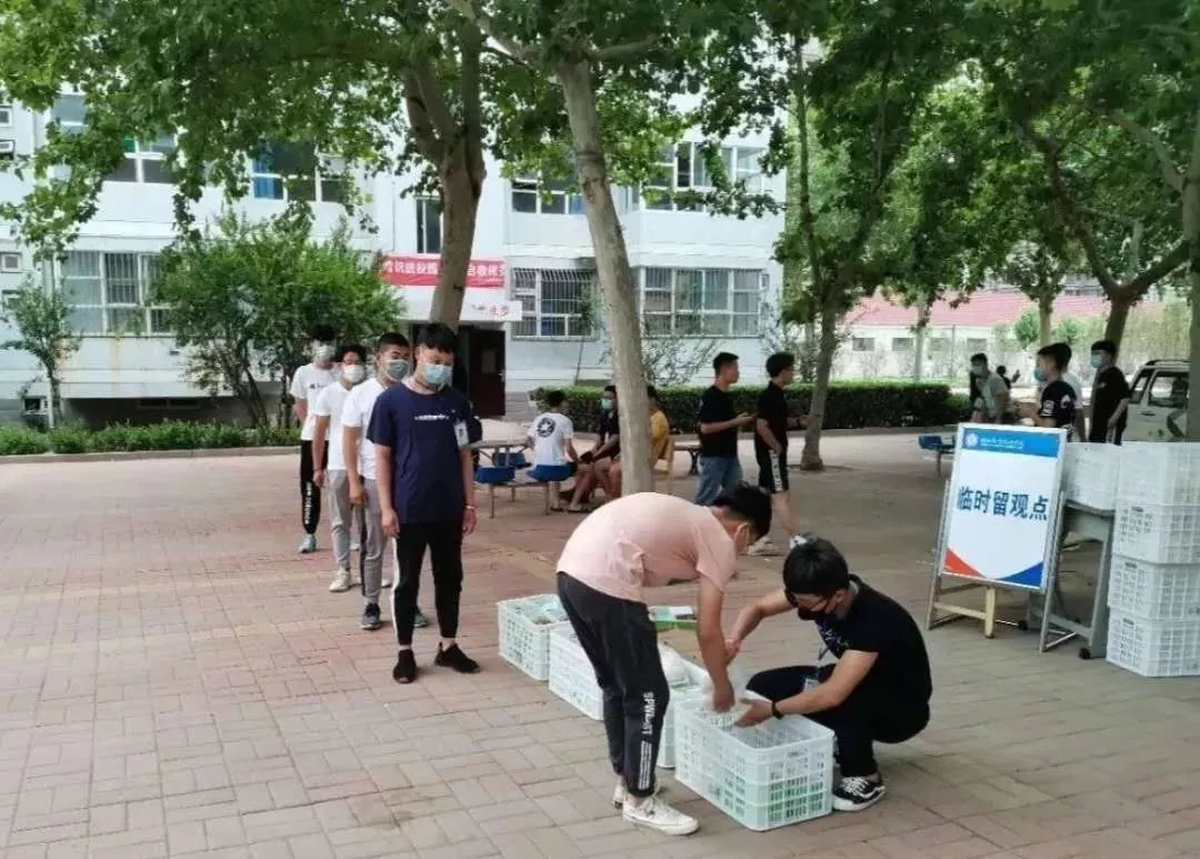 同学们在手机微信登陆小程序后,即可根据菜单提前下单,选择自己喜欢的食品。电气工程系学生科安排值班学生到学校食堂将食品统一领回,并到公寓门口以班级为单位进行分发。订餐学生无需到食堂,就可以在宿舍门口领回食品,避免了聚集隐患。