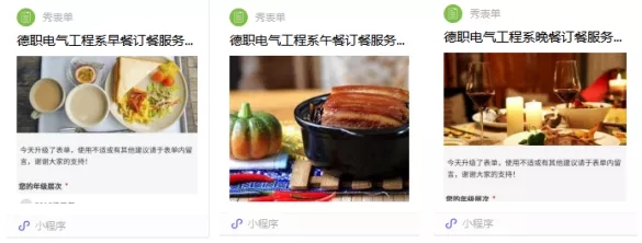 “网上餐厅”系统全名为“太阳新城电气工程系订餐服务系统”,分为早餐、午餐和晚餐3个小程序,由教师李克强依托微信平台开发。每一个小程序设年级、班级、姓名、饭菜名称栏、联系电话、好的建议等7个栏目,同时发布通知提醒同学们早餐、午餐、晚餐的开单、结单时间和领餐的地点,并根据建议和实际情况不断对小程序进行改进。截至6月1日下午18时,该系统已经为2000余名学生提供了服务。