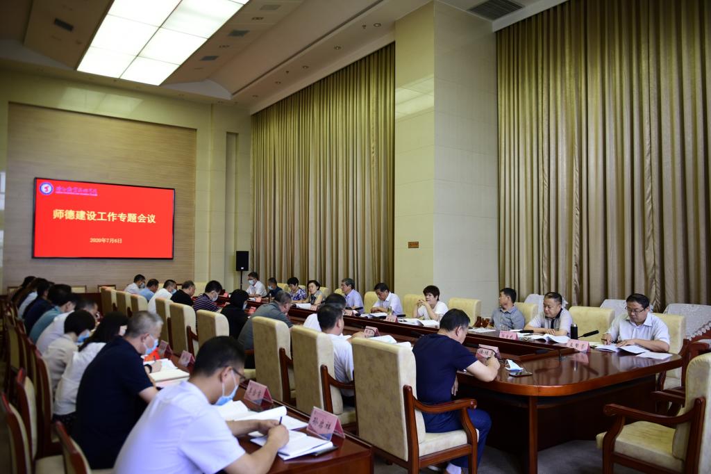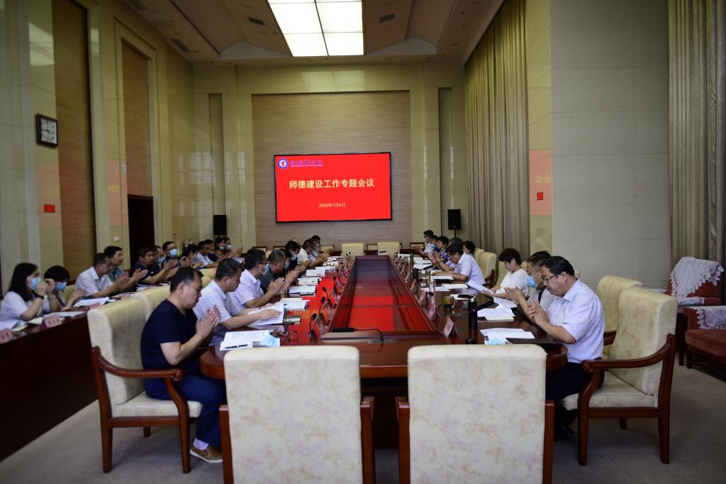 7月6日,我校召开师德建设主题教育活动专题会议,贯彻落实上级关于师德师风建设的部署,研究完善师德建设工作体系的举措,奋力谱写以师德师风建设支撑学校高质量发展的新篇章。院长张同光出席并讲话,校领导张苹、周爱红、殷淑英、聂长义、郭士武、周吉星、孟繁营出席会议,各部门单位主要负责同志、学校师德建设工作委员会办公室全体成员参加会议。校党委副书记张恒斌主持。