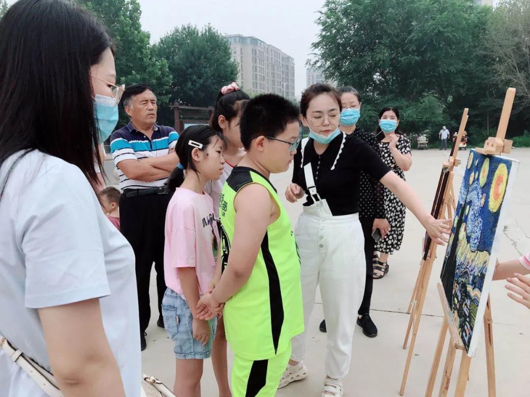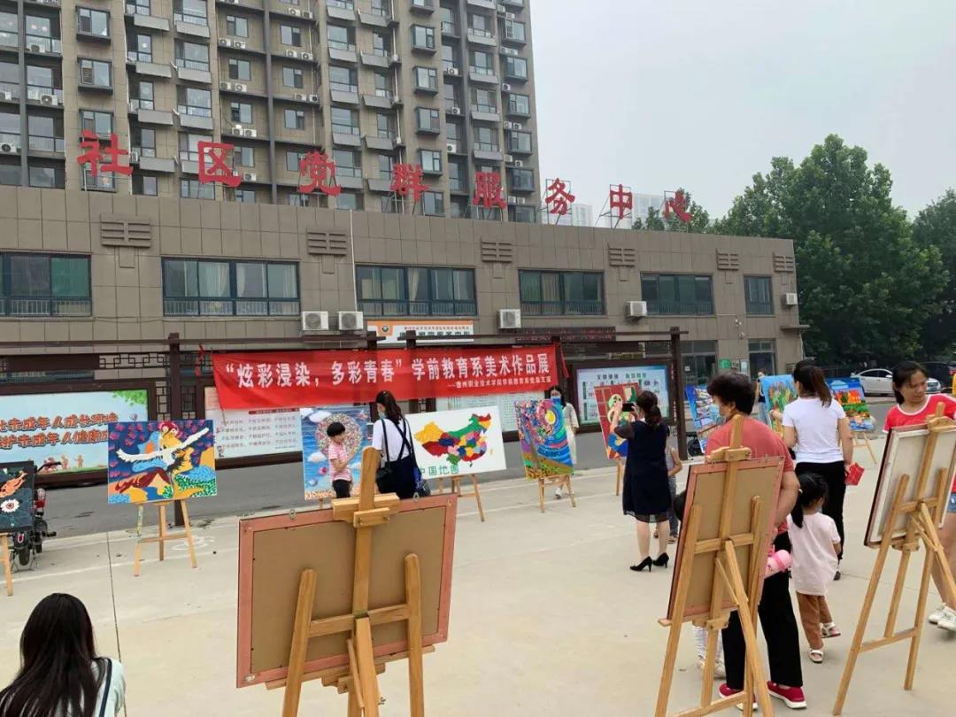 主题党日活动的主题为“炫彩浸染,多彩青春”,学前教育系师生将20余幅美术作品在社区广场展览,为社区居民带来了一场高雅的艺术和视觉盛宴。