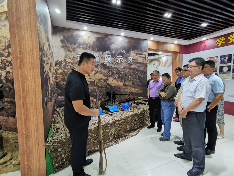 为纪念抗战胜利75周年,创新党员学习教育方式,9月4日,在校党委委员、办公室主任郭士武,校党委委员、宣传部部长周吉星的带领下,我校机关党总支党政办公室党支部和健康管理学院党支部组织党员30余人赴德州市武城县红色国防教育基地开展“党员活动日”学习,重温党史和德州红色革命史,缅怀革命先烈丰功伟绩,推进党建工作入脑入心。
