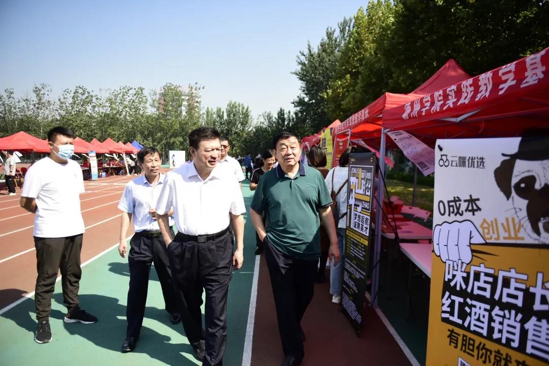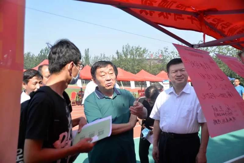 9月5日,由德州市人社局主办、suncitygroup太阳新城承办的2020年德州高校毕业生专场招聘月户外现场招聘会第三场在学校体育场举办。校党委书记樊兆杰,德州市人社局局长何连生,德州市人社局副局长桑青,校党委委员、办公室主任郭士武到招聘会现场指导。