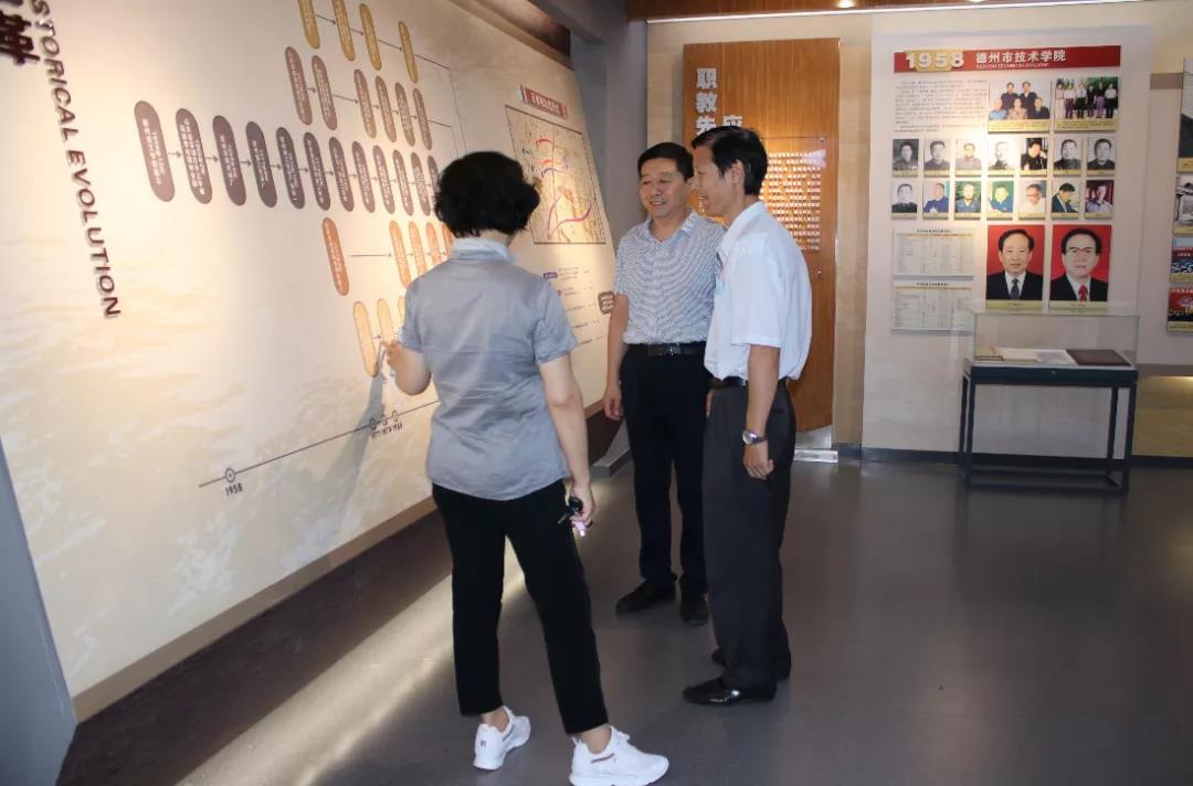 张苹向来宾一行介绍了我校的基本情况及办学特色,表示,学校将全力支持德州电大在新时代终身教育和学习型社会建设中发挥骨干作用,调配精干力量,有效整合学校和社会多方资源,突出“能力+学历”教育模式,以“走在全省前列”为目标,打造基层干部学历教育办学品牌。市电大相关负责同志汇报了电大办学情况。