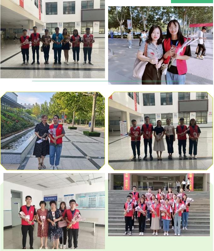 9月10日晨间,校学生会干部以及志愿者们在老师上课的途中给老师们送上鲜花、贺卡以及对老师的祝福。