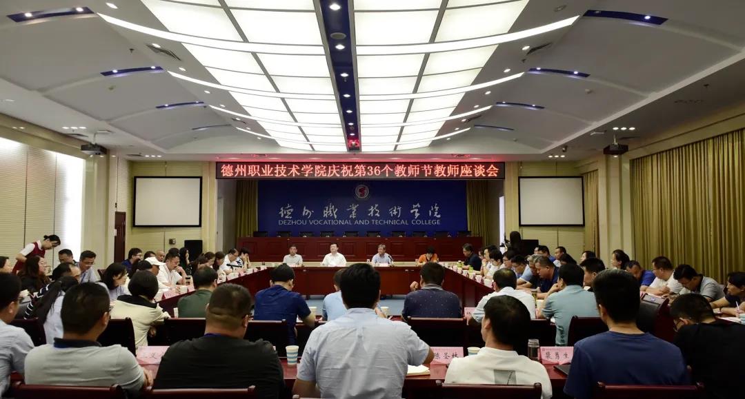 9月10日,我校在润德楼二楼会议厅召开庆祝第36个教师节座谈会,向全体教育工作者致以节日的问候。校党委书记樊兆杰讲话,院长张同光主持,校领导张恒斌、周爱红、殷淑英、周吉星、孟繁营出席,各党总支和直属支部书记,各系部综合科科长、教研室主任以及优秀教师代表参加会议。