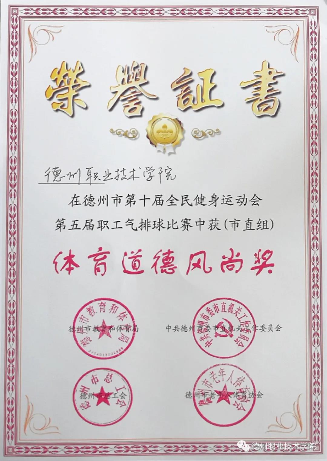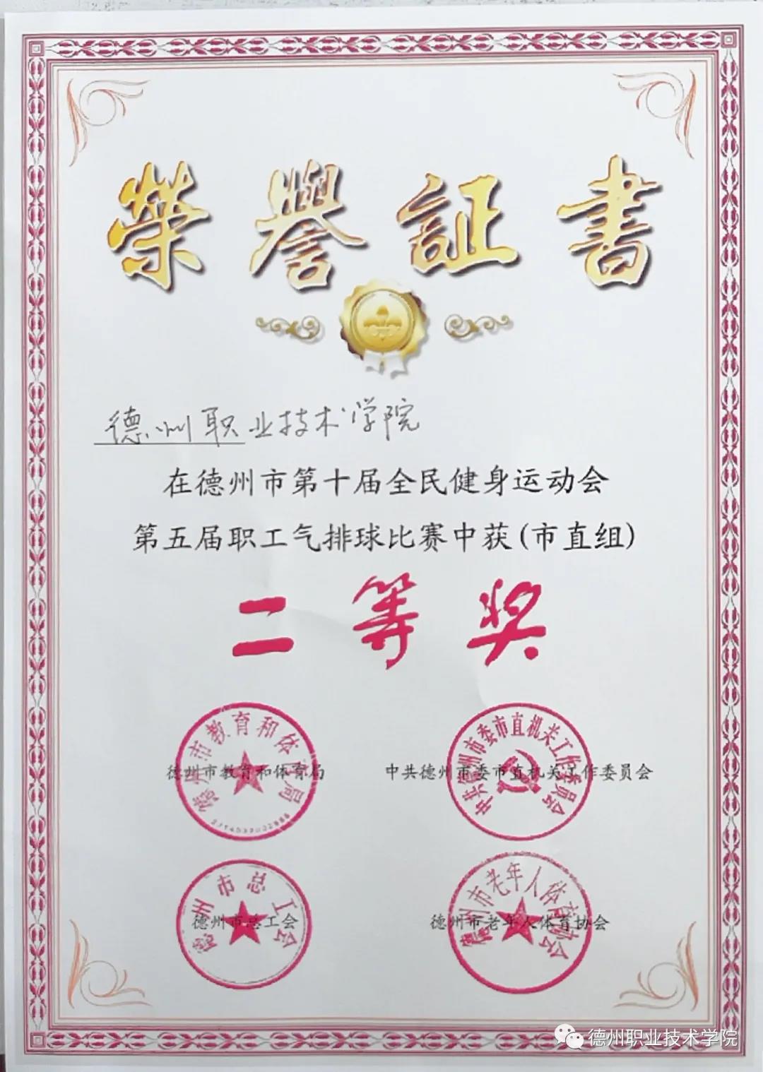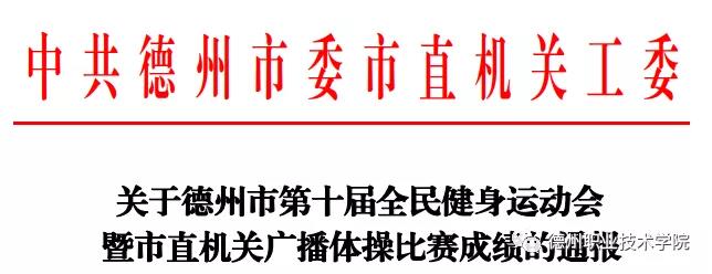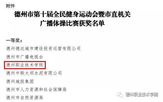 为贯彻落实全民健身战略,丰富师生文化生活,强健师生体魄,展示健康校园建设成果,日前,我校参加了系列体育竞赛,技压群雄,获得优异成绩。其中,获德州市第十届全民健身运动会市直机关广播体操比赛一等奖,获第五届职工气排球比赛二等奖和体育道德风尚奖,获德州市职工第六届男子篮球联赛第五名。