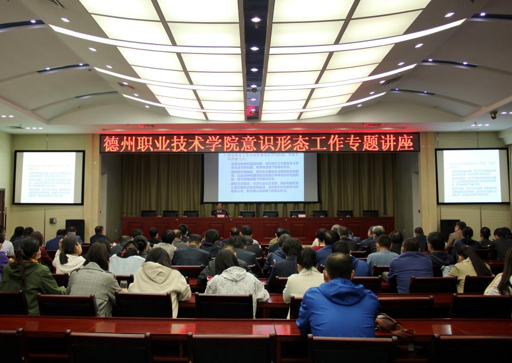 为贯彻落实习近平总书记关于意识形态工作的重要讲话精神,把意识形态工作抓实抓细抓出成效,按照学校党委的部署和要求,10月14日,我校举办了意识形态工作专题讲座,德州市委宣传部副部长、教授史成志应邀,作题为“把意识形态工作责任制落到实处”的讲座。学校领导班子成员出席讲座,县处级领导干部,各系部党总支副书记、学生科长、全校专职辅导员和思政课教师聆听讲座,校党委委员、宣传部部长周吉星主持。