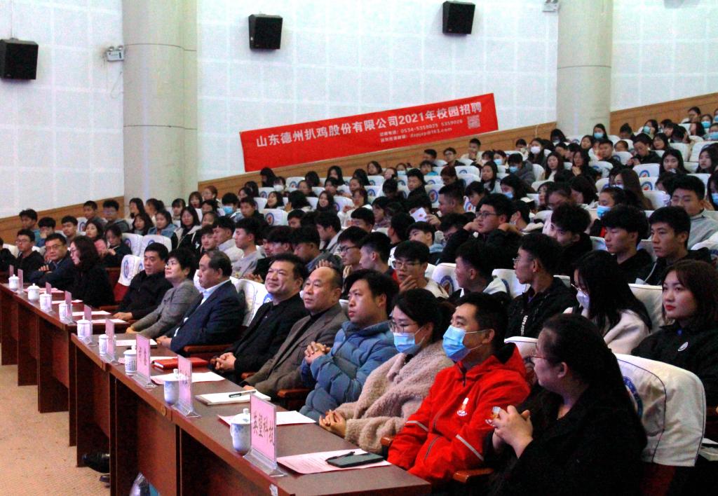 随后,德州扒鸡公司、中椒英潮公司、英望科技公司人力资源部负责人分别进行企业招聘宣讲,向学校2021届毕业生介绍了企业招聘相关岗位、薪资待遇等学生关注的问题。