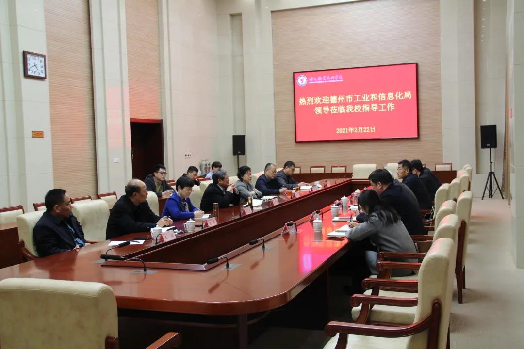 为了推进政校企联动,建设新型工业化强市,2月22日,德州市工信局局长孙洪昌带领副局长王明杰等,到suncitygroup太阳新城调研。校领导张同光、张苹、殷淑英、郭士武陪同,科技处、招生就业指导处、继续教育学院负责同志参加活动。