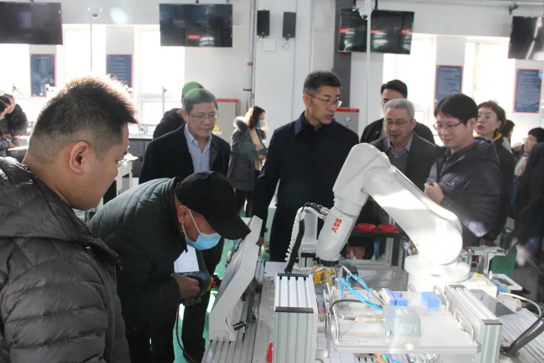 座谈前,孙洪昌一行还实地参观了学校沙盘、现代智能制造实训平台、现代工业机器人实训平台、现代汽车工程实训平台、现代化工实训平台、学生食堂和培训公寓楼。