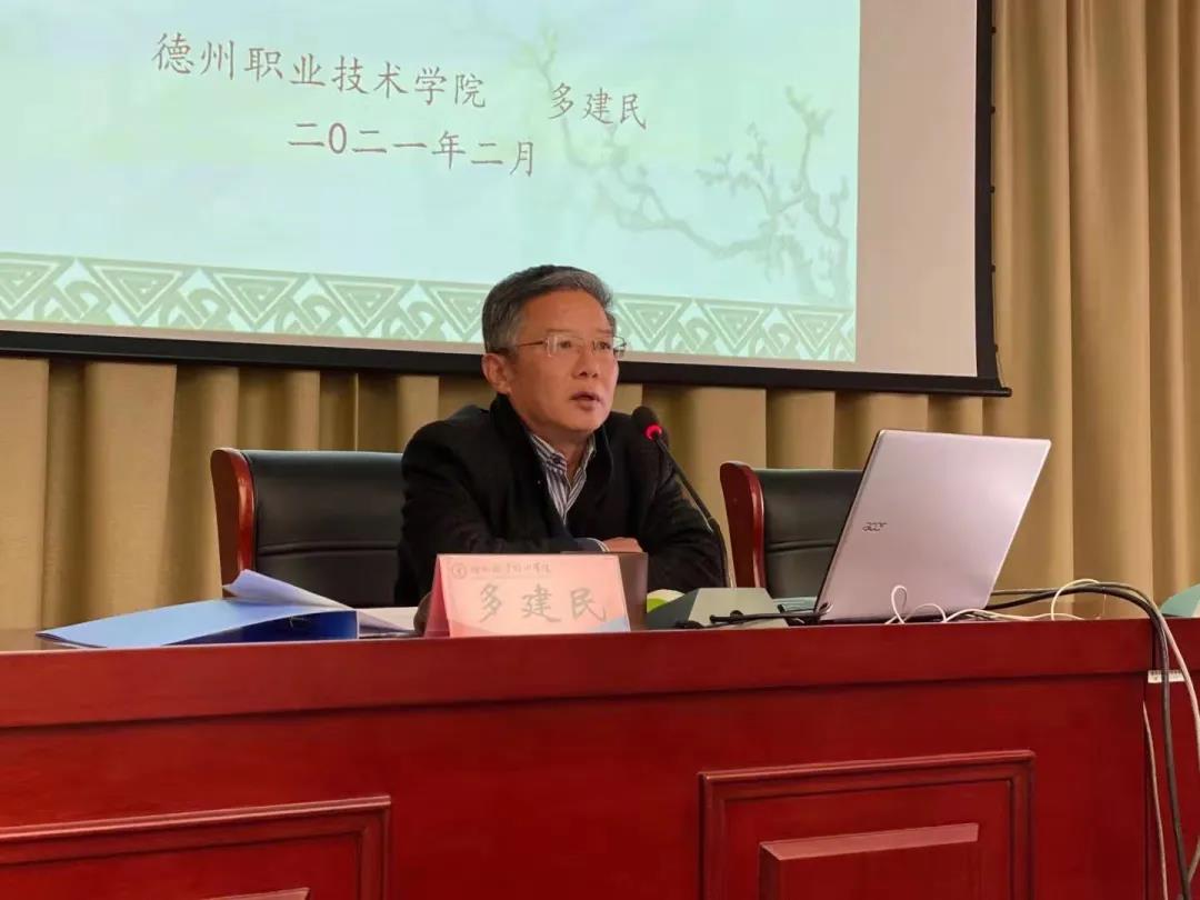 为贯彻落实习近平总书记在党史学习教育动员大会上的重要讲话精神,根据学校寒假教师培训计划安排,2月25日,校党委委员、副院长多建民作题为《党员必修课,提高政治“三力”》的专题辅导报告。校党委书记樊兆杰出席报告会,校党委委员、办公室主任郭士武主持,校党委委员、宣传部部长周吉星参加,学校副科级以上干部聆听报告。