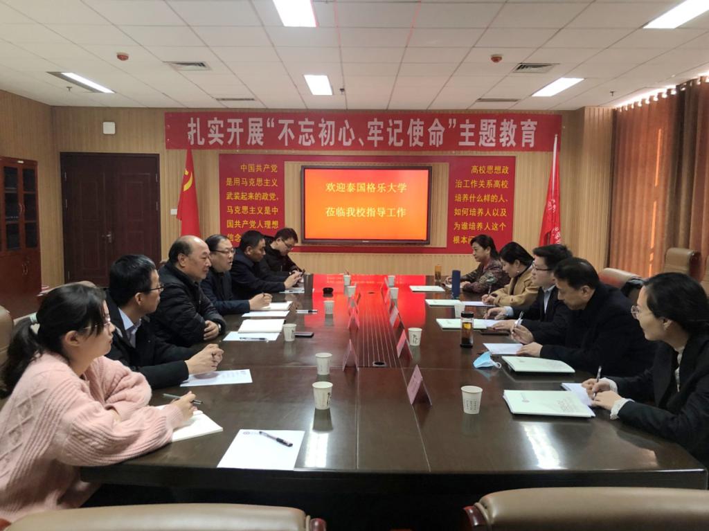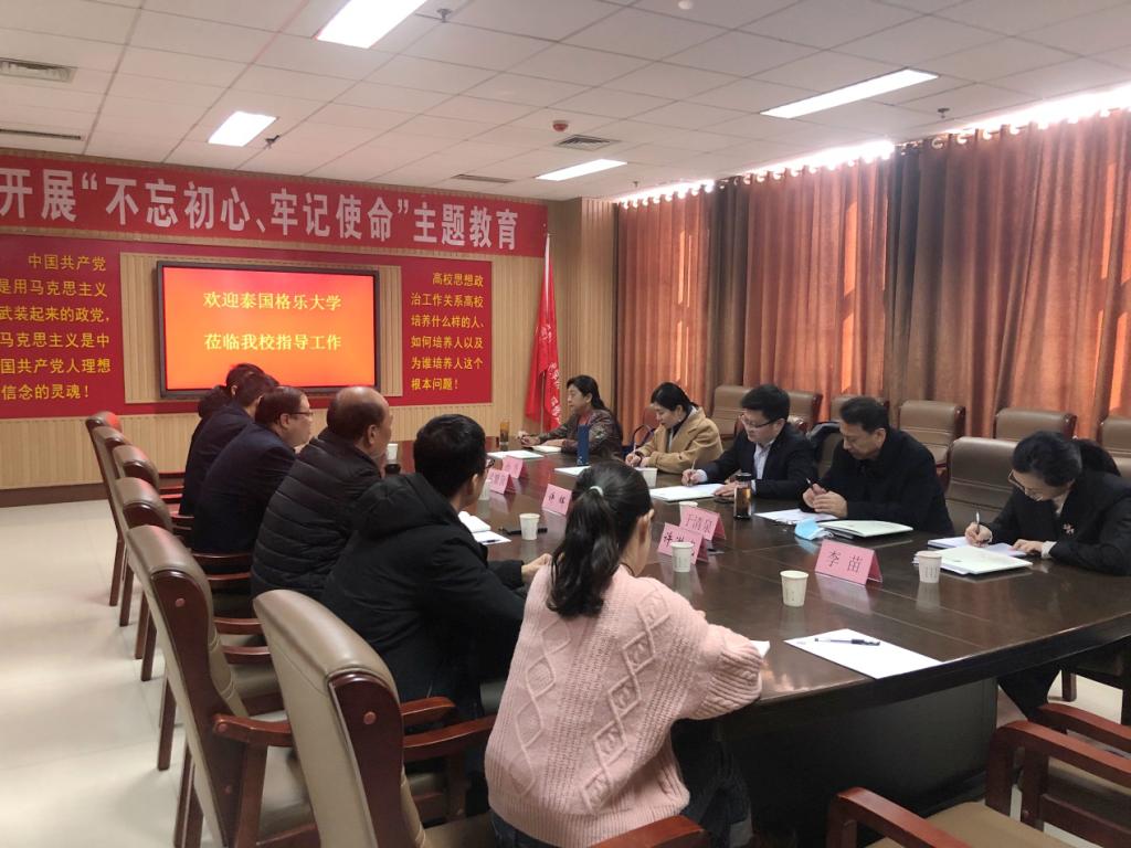 齐斌介绍了泰国格乐大学的办学情况,对我校近年来取得的成绩表示赞赏,有意向在师资联合培养、学生联合培养等方面与我校开展合作。