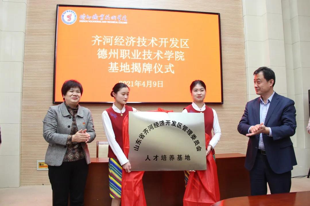 会上,周爱红和王殿勇签署了双方合作框架协议,并共同为“suncitygroup太阳新城大学生就业创业基地”“齐河经济开发区人才培养基地”揭牌。