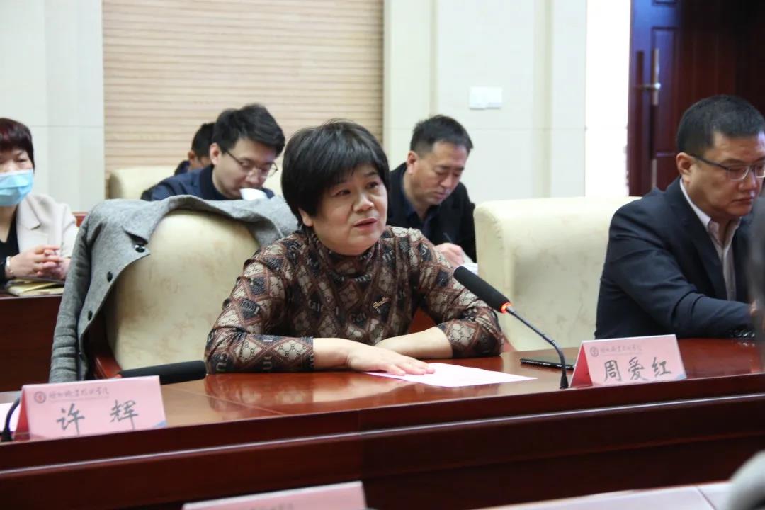 双方于润德楼8楼视频会议室举行座谈会。周爱红向来宾介绍了我校专业设置基本情况,阐述了政校企合作的不同模式。她表示,当前职业技术人才短缺,政府、高校、企业要进一步探索全面合作机制,搭建政校企合作平台,创新合作模式,探索政校企合作长效机制,实现高校与企业良性互动、理论与行业实践有机互补、政校企合作共赢。