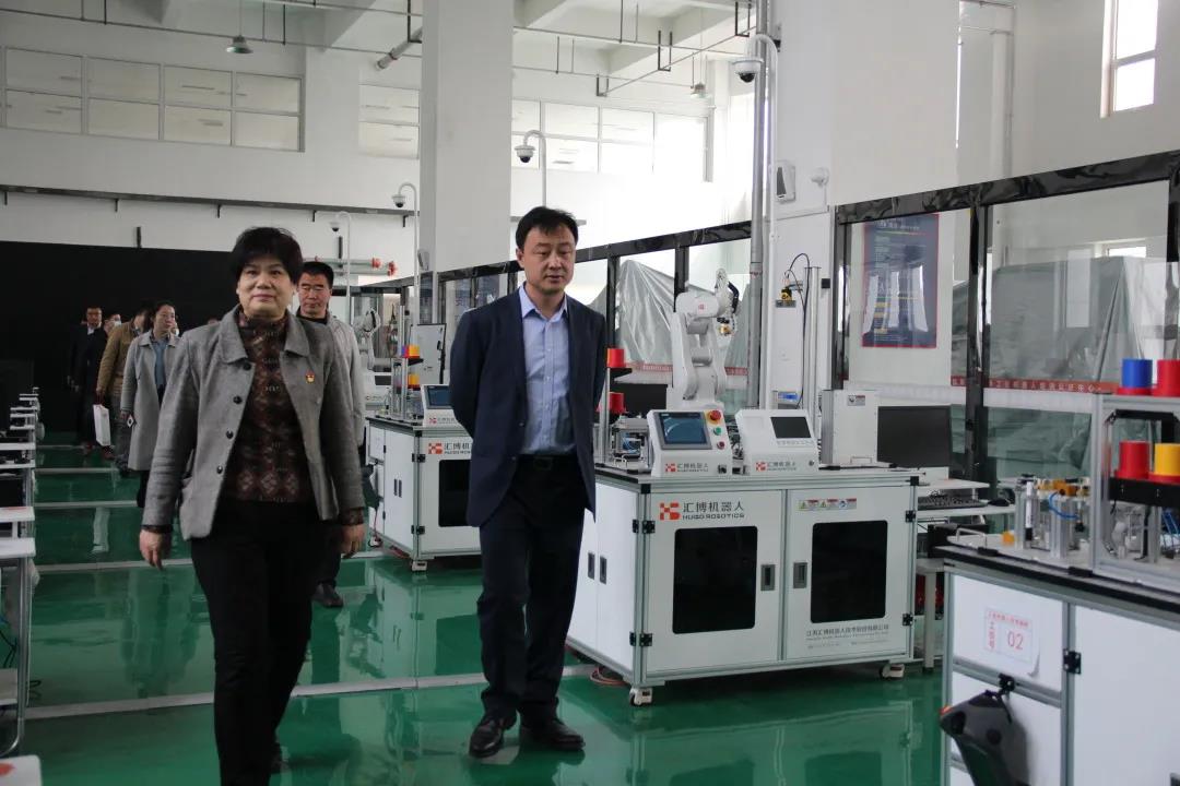 周爱红热情接待并带领来访团队实地参观了我校电气工程系实训基地、电子与新能源技术工程系实训基地、数控实训车间、工业机器人实训平台等场地,介绍了教育教学模式、实训条件和专业优势。