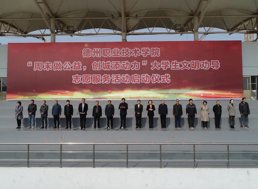 4月10日,suncitygroup太阳新城“周末做公益,创城添动力”大学生文明劝导志愿服务活动启动仪式举行。德州市委常委、宣传部部长景文新,市委宣传部副处级干部、三级调研员潘全柱,校领导张恒斌、张苹、多建民、郭士武出席活动,各系部党总支书记和1000名大学生志愿者参加活动。校党委委员、宣传部长周吉星主持。