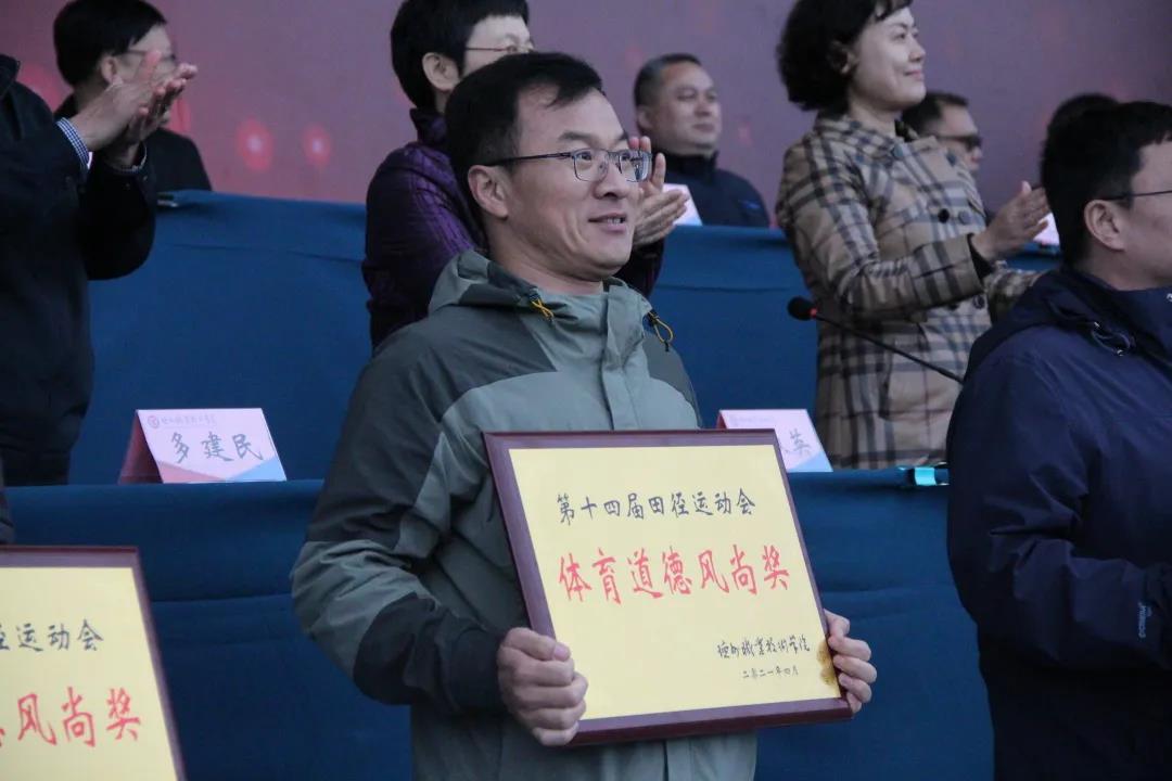 4月23日下午,我校第十四届田径运动会完成各项比赛任务,并举行闭幕式。校领导樊兆杰、张恒斌、张苹、周爱红、殷淑英、聂长义、多建民、郭士武、周吉星出席,各相关部门负责人、系部党总支书记在主席台就坐。校党委委员、办公室主任郭士武主持。