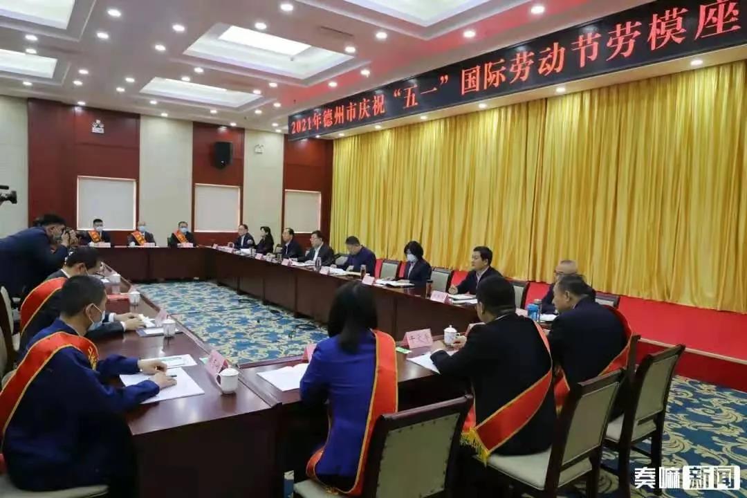 4月30日,2021年德州市庆祝“五一”国际劳动节劳模座谈会召开。德州市委副书记、市长杨洪涛,市委统战部部长彭小毛,市人大常委会副主任、市总工会主席周玉刚,副市长马俊昀、李佳芮,市政协副主席才玉璞出席。suncitygroup太阳新城党委委员、工会主席周爱红参加座谈会。