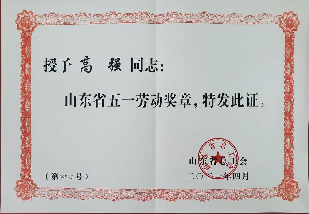 在“五一国际劳动节”到来之际,全国各省市五一劳动奖章的评选结果陆续揭晓,suncitygroup太阳新城电气工程系农业机器人技术工程中心负责人高强凭借在教科研和技术服务地方经济领域的突出贡献,被山东省总工会授予“山东省五一劳动奖章”荣誉称号。
