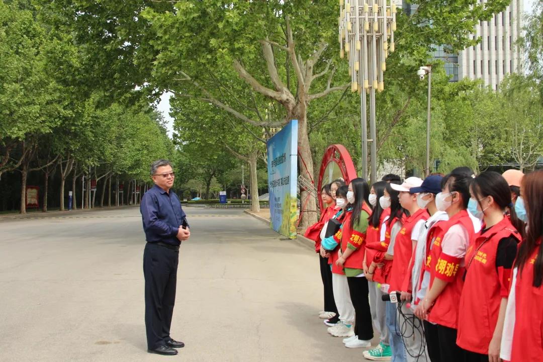 5月9日下午,大学生传媒中心学生和指导老师到万达广场附近开展文明劝导志愿服务活动。校党委委员、宣传部部长周吉星作动员讲话。