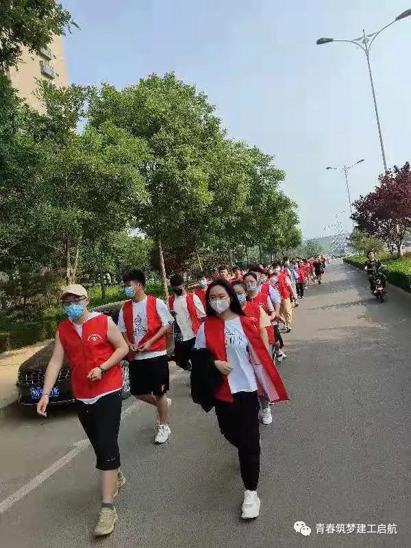 5月22日上午,建筑园林工程系开展文明劝导志愿服务活动,100余名大学生志愿者从生活区东门出发徒步1.8公里,到长河公园等场所进行文明劝导。