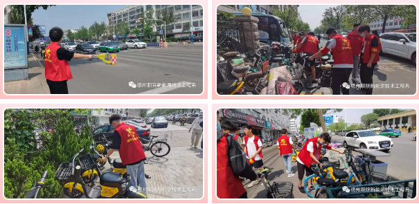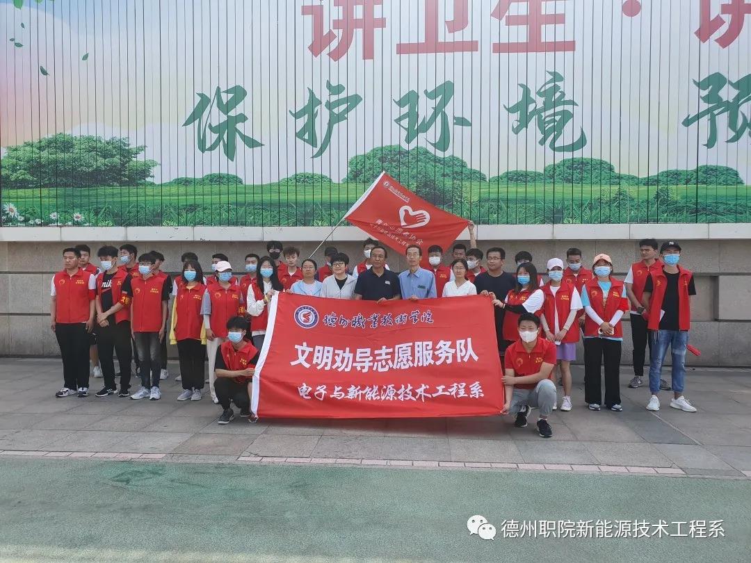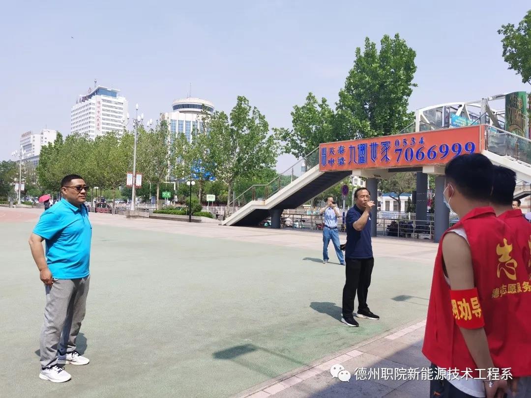 随后,电子与新能源技术工程系志愿者服务队在系党总支书记魏立新等老师的带领下,分别前往德州市中心广场路口及中心广场、沿三八路—德兴路—天衢路一带开展志愿者服务。