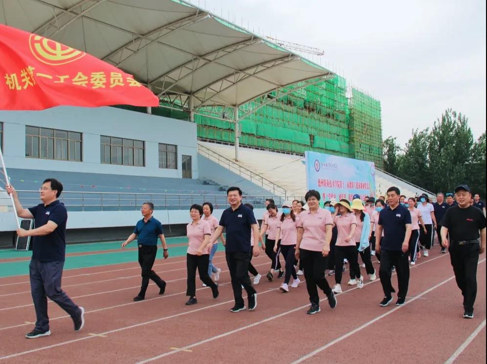 为庆祝中国共产党成立100周年,丰富广大教职工文化体育生活,提高广大教职工的身体素质和健康水平,引导广大教职工学党史、感党恩、听党话、跟党走,5月27日下午,学校工会举行“学党史、感党恩、跟党走”教职工健康健步走活动,校党委书记樊兆杰,校党委委员、工会主席周爱红,校党委委员、副院长殷淑英,校党委委员、纪委书记聂长义,校党委委员、副院长多建民,校党委委员、办公室主任郭士武出席活动,学校各系部负责人,各基层工会人员,共600余名教职工参加活动。