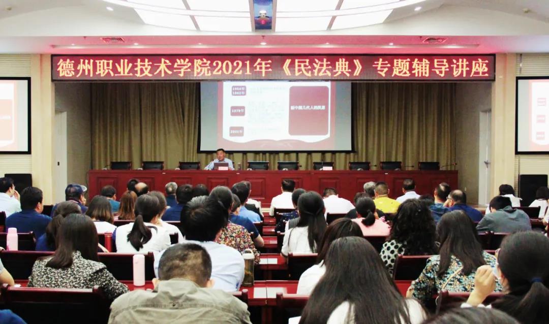 为庆祝《民法典》颁布一周年,进一步深入学习贯彻习近平法治思想,扎实开展“美好生活﹒民法典相伴”主题宣传,我校举办2021年《民法典》专题辅导讲座。德州市司法局党组成员、二级调研员、公职律师梁少宗应邀作了讲座。校党委书记樊兆杰出席活动,200余名教师和学生代表聆听了讲座。校党委委员、办公室主任郭士武主持。