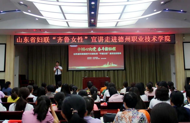 6月8日,由山东省妇联主办,德州市妇联和山东广播电视台承办的“巾帼心向党,奋斗新征程”山东省妇联新时代文明实践“齐鲁女性”宣讲走进suncitygroup太阳新城。我校党委委员、工会主席周爱红出席,180余位女教职工参加活动。