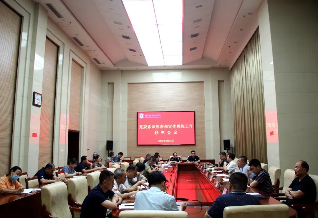 为贯彻上级有关文件部署和要求,落实意识形态工作责任制,6月16日,我校召开党委意识形态和宣传思想工作联席会议。校党委书记樊兆杰,校党委委员、副院长郭士武出席,校党委委员、办公室主任、宣传部部长周吉星主持,学校意识形态工作和宣传思想工作领导小组成员和领导小组办公室联席会议成员参加会议。