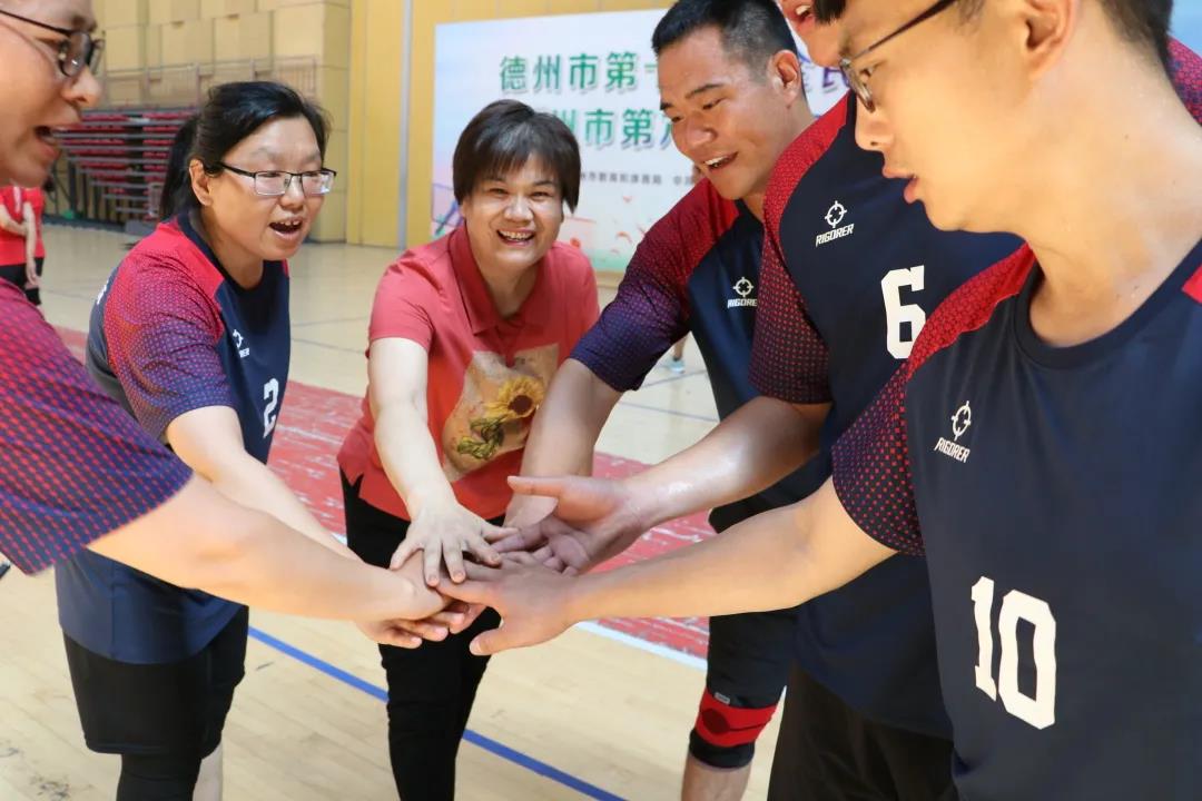 6月19日,德州市第十一届全民健身运动会第六届气排球比赛在德州市体育馆拉开帷幕。全市共43支代表队近500人参加比赛,我校教职工队顽强拼搏、奋勇争先,荣获(市直组)第一名和体育道德风尚奖。