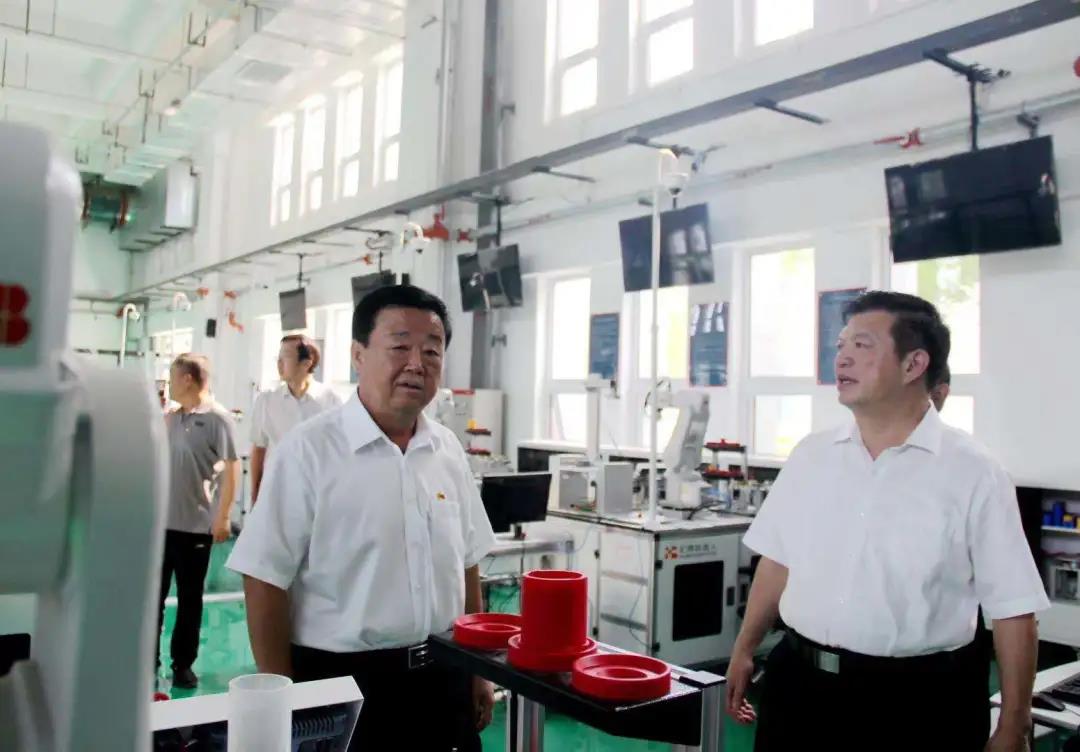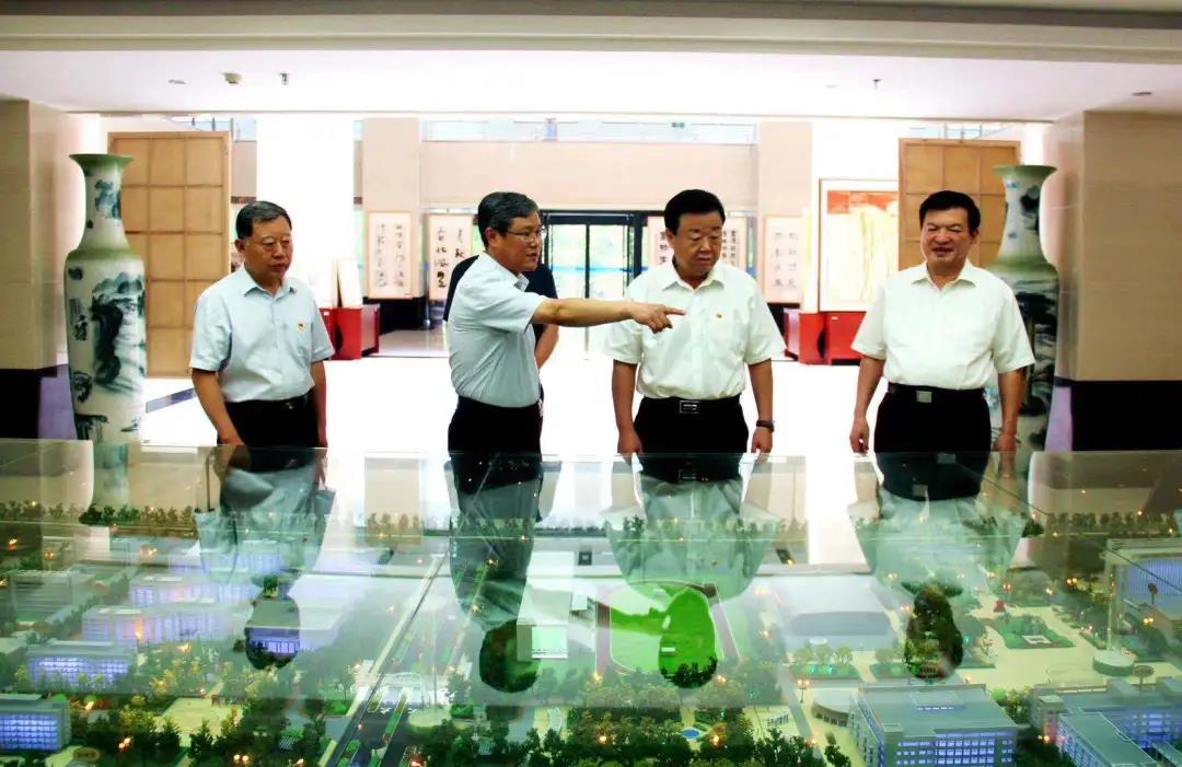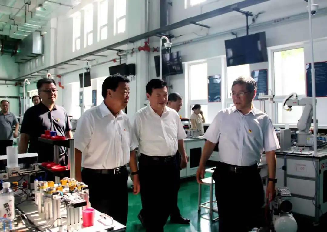 在樊兆杰、张同光等人的陪同下,翟长生一行实地参观了学校沙盘、中华德能鼎、市公共实训中心和学校光伏发电实训平台等场所。