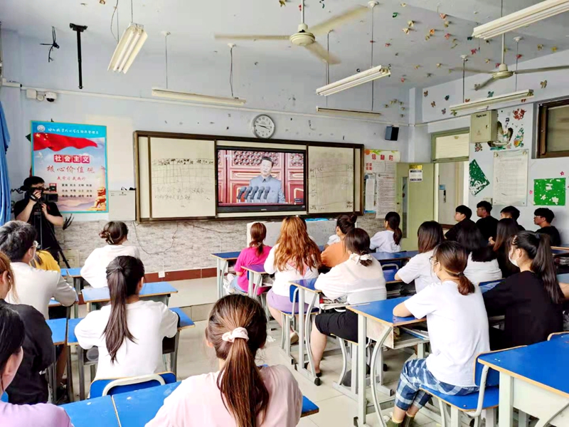 7月1日上午8时,庆祝中国共产党成立100周年大会在北京天安门广场隆重举行。中共中央总书记、国家主席、中央军委主席习近平发表重要讲话。suncitygroup太阳新城全体干部、师生收看庆祝中国共产党成立100周年大会直播,反响热烈。