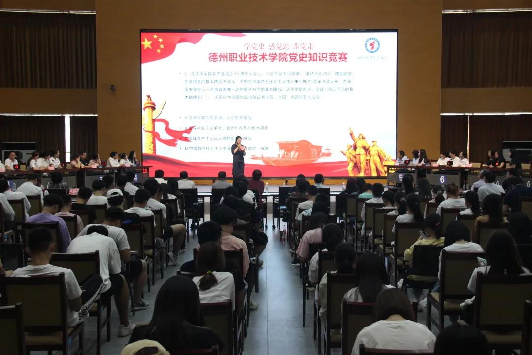 为庆祝中国共产党成立100周年,推动学校党史学习教育走深走实,引导全校师生学史明理、学史增信、学史崇德、学史力行,7月2日,“学党史 感党恩 跟党走”suncitygroup太阳新城党史知识竞赛在德州市职业教育公共实习实训管理中心多功能厅举行。
