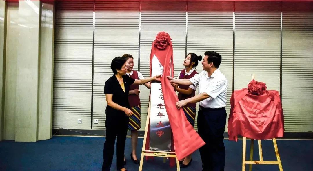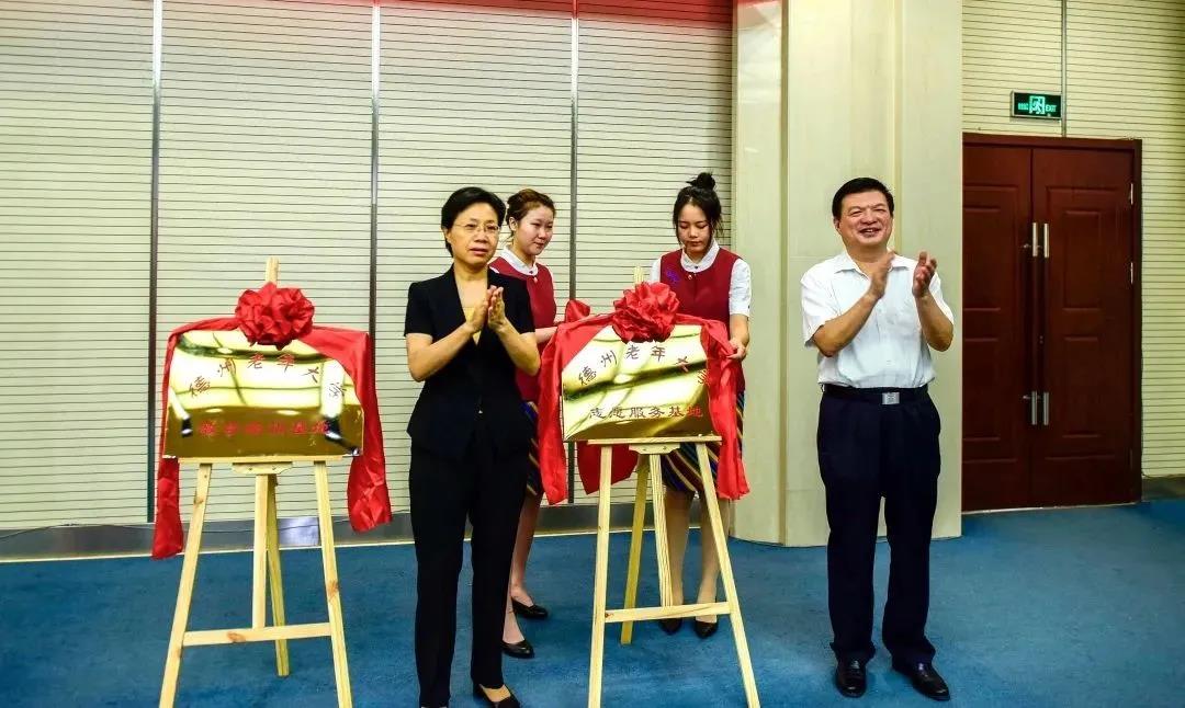 樊兆杰与郭洪霞共同为suncitygroup太阳新城老年大学以及德州老年大学教学培训基地、志愿服务基地揭牌。