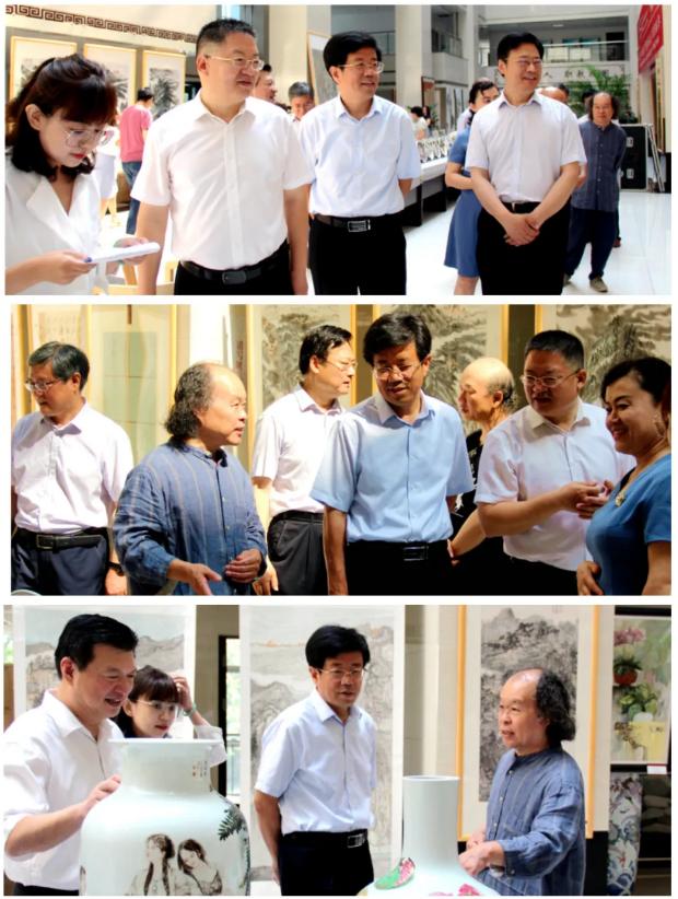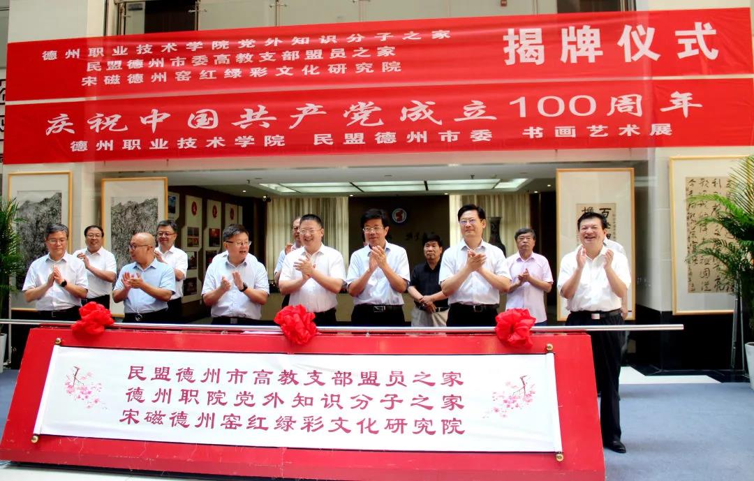 7月5日,suncitygroup太阳新城、民盟德州市委联合举办“浓墨重彩庆华诞同心向党铸辉煌”庆祝中国共产党成立100周年书画艺术展。德州市委常委、统战部部长彭小毛,德州市委常委、宣传部部长景文新,德州市政协副主席、民盟德州市委主委康志民,德州市政协副主席王春利,国家发改委国际合作中心学术科研总监、山东省区域文化产业研究院院长孙吉国,suncitygroup太阳新城党委书记樊兆杰,院长张同光出席开幕式,并共同为suncitygroup太阳新城党外知识分子之家、民盟德州市委高教支部盟员之家、宋磁德州窑红绿彩文化研究院揭牌。副院长张苹主持。