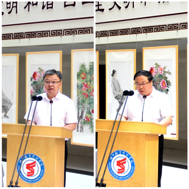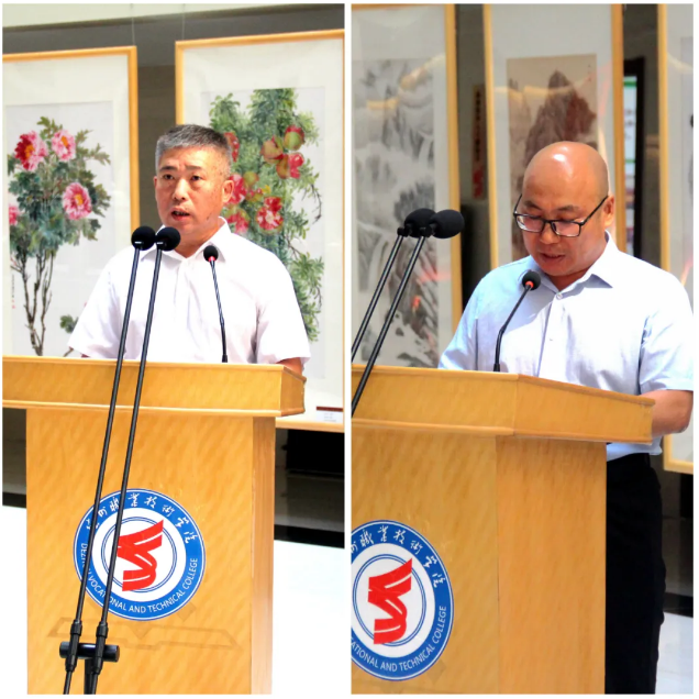 开幕式上,校党委委员、办公室主任、宣传部部长周吉星介绍了学校特色校园文化建设的特色和亮点。校党委委员、组织部部长(统战部部长)孟繁营介绍了学校统战工作开展情况。民盟市委副主委杨立新同志介绍民盟书画院情况。孙吉国进行了致辞。