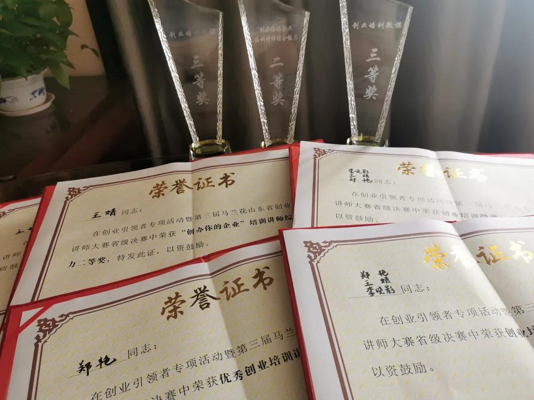 大赛自4月份启动至今,吸引全省本科院校、高职院校、培训学校等培训讲师千余人参与选拔。我校高度重视,积极准备创业讲师的选拔工作,于4月份采取集中封闭式强化培训方式,由国家创业培训师进行授课,包含大赛能力提升、理论学习、授课技巧、结构性问答、创业计划书、课程试讲等环节。我校对30余名创业讲师集中授课,选拔市赛选手。6月29日德州市市赛通过创业讲师笔试、创业项目展示+讲师实战能力赛、创业培训精品课展示3个环节紧张激烈的角逐,最终选拔我校郑艳、王婧两位教师以市赛一等奖的成绩,代表德州市参加省赛角逐;推荐我校郑艳、王婧、李晓影教师团队的微课作品参加创业培训微课省赛。最终,王婧获得“创办你的企业”培训讲师综合能力赛省赛二等奖;郑艳获得“创办你的企业”培训讲师综合能力赛校赛优秀奖,并获得“山东省优秀创业讲师”称号。我校推荐的两门微课获得创业培训微课赛三等奖。