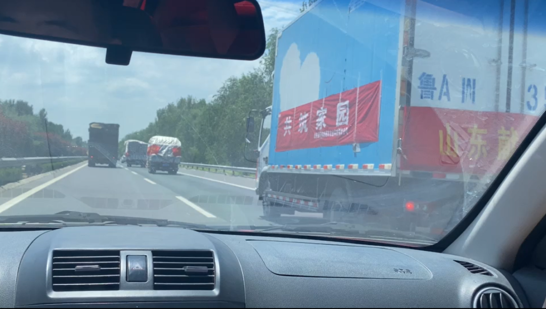 在赶往河南的高速路上,夏芝航同学看到了来自全国各地奔赴河南的车辆,感受到在突如其来的洪灾面前,中华民族彰显出强大的凝聚力。